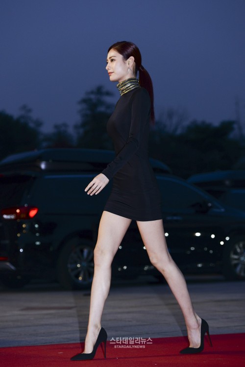 Lần khác, tại Baeksang Arts Awards lần thứ 54, người đẹp diện bộ trang phục táo bạo với dáng xẻ cao gần tới hông. Thiết kế phần trước hờ hững không kém phần gợi cảm. Bộ trang phục này cũng khiến cô trở thành tâm điểm chú ý. Dễ thấy, hầu như Nana đều chọn những bộ trang phục màu đen khi tham gia thảm đỏ. Màu đen tuy đơn giản nhưng luôn sang trọng và đặc biệt tạo cảm giác thân hình người mặc thon thả hơn.
